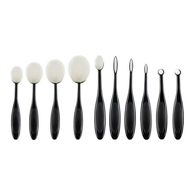 10pcs/set Oval Toothbrush Blend Foundation Powder Makeup Brushes For Cream Fluid Beauty Kit Tools
