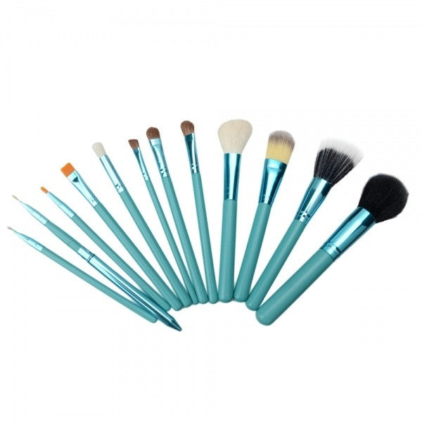 12pcs Blue Professional Makeup Brush Set Kit with Leather Cup Holder Case