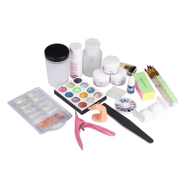 19Acrylic Nail Art Tips Powder Liquid Brush Glitter Clipper Primer File Set Kit Suitable for professional use or home use Anne