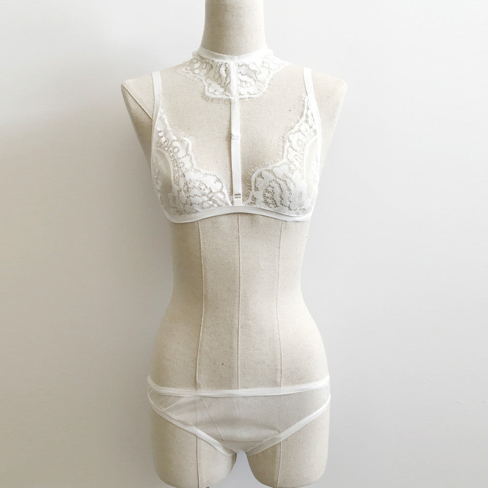 1PC Lace Crop Top + Pants Set Women Sexy Lingerie Lace Bralette Crop Tops Babydoll Women's Nightwear Basic camisoles #23
