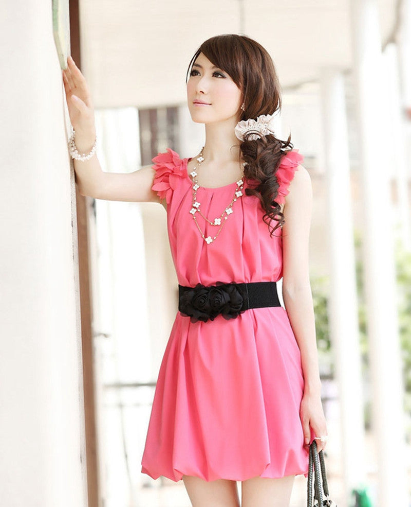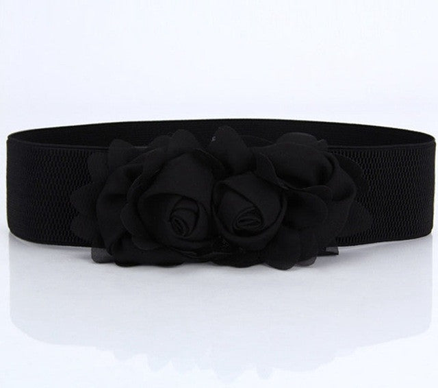 1pcs High Quality Fashion Womens Girl Chiffon Flower Double Rose Flower Elastic Stretch Waist Belt #3546