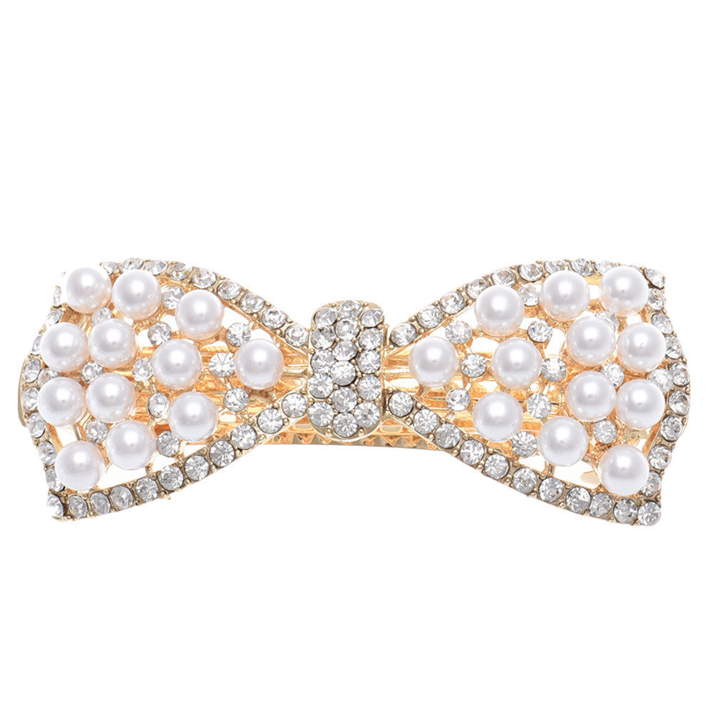 1pcs Shine Rhinestone Girls Woman Bow Hairpin Full Diamond Pearl Bow Spring Clip For Hair Care #3546