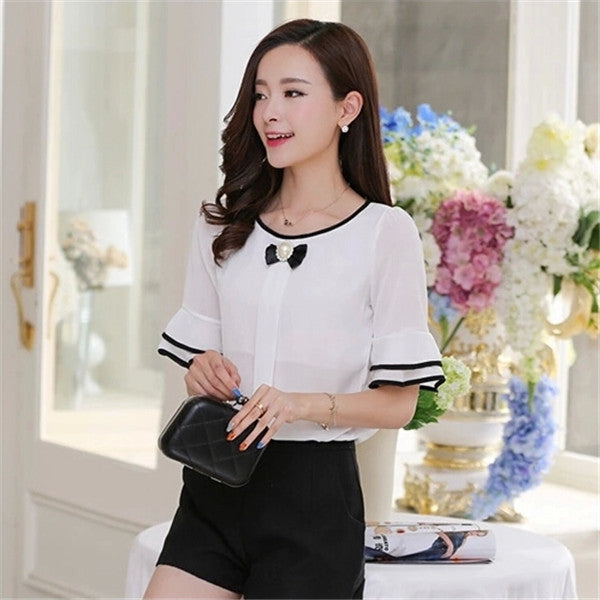 2015 Summer New Large Size Women Shirt Loose O-neck Half Sleeve Chiffon Blouse Top Female Temperament Flare Sleeve Tops 31123