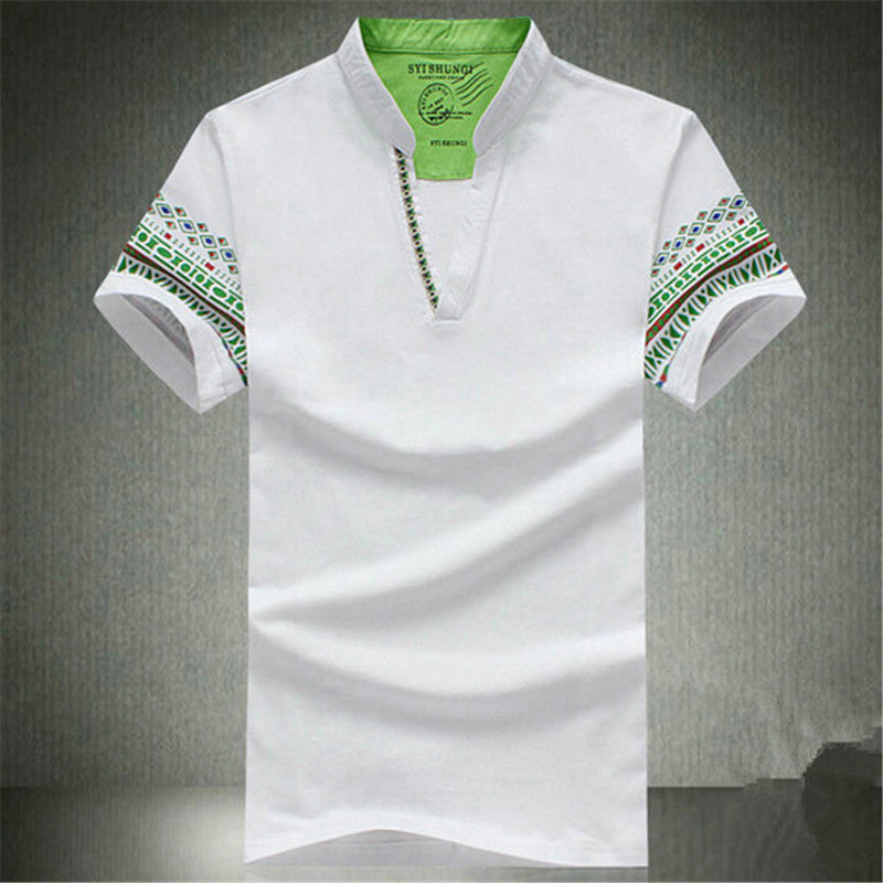 2015 Summer Retro Style V-neck Short-sleeved T-shirt Men Plus Size M-5XL Printed T Shirt Korean Slim Casual Shirt Tops 31176
