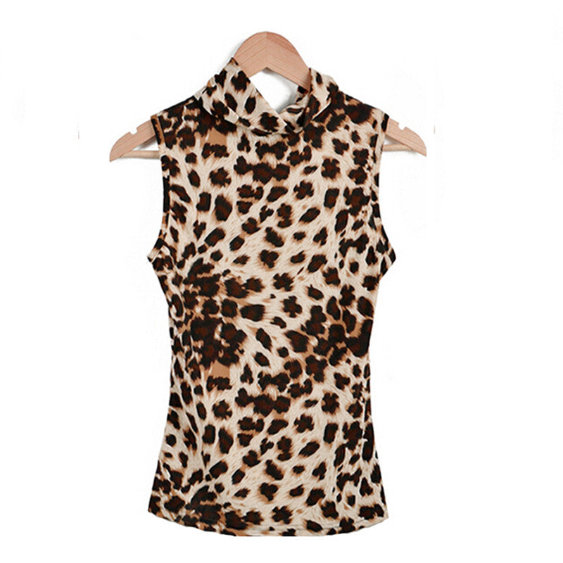 2016 American Apparel Cotton T Shirt Women Clothing Sexy Leopard Shirt Women's High collar Sleeveless T Shirt Women Femme
