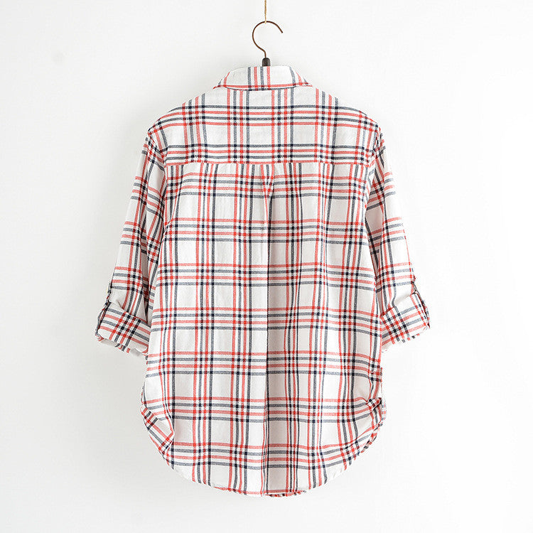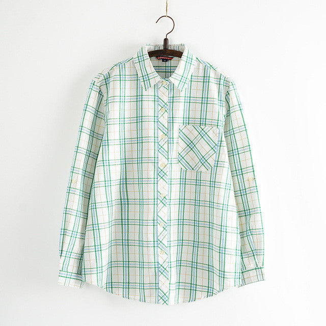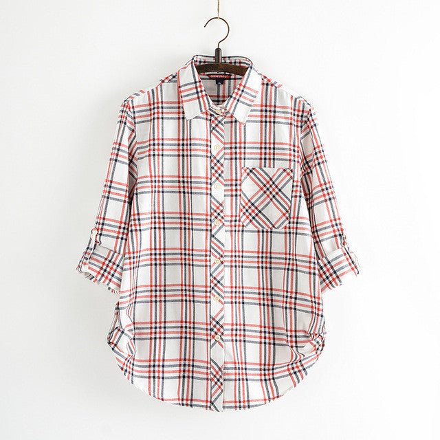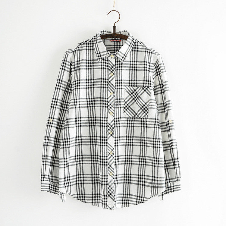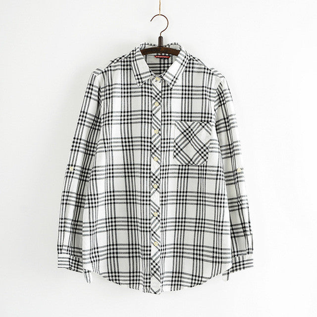 2016 Autumn New Shirt Fashion Casual Female Long Sleeve Women Plaid Blouse Turn-down Collar Tops With Button Pocket 71601