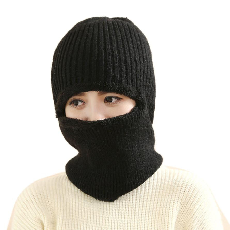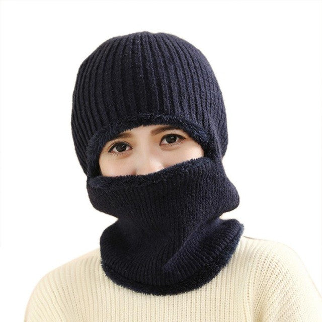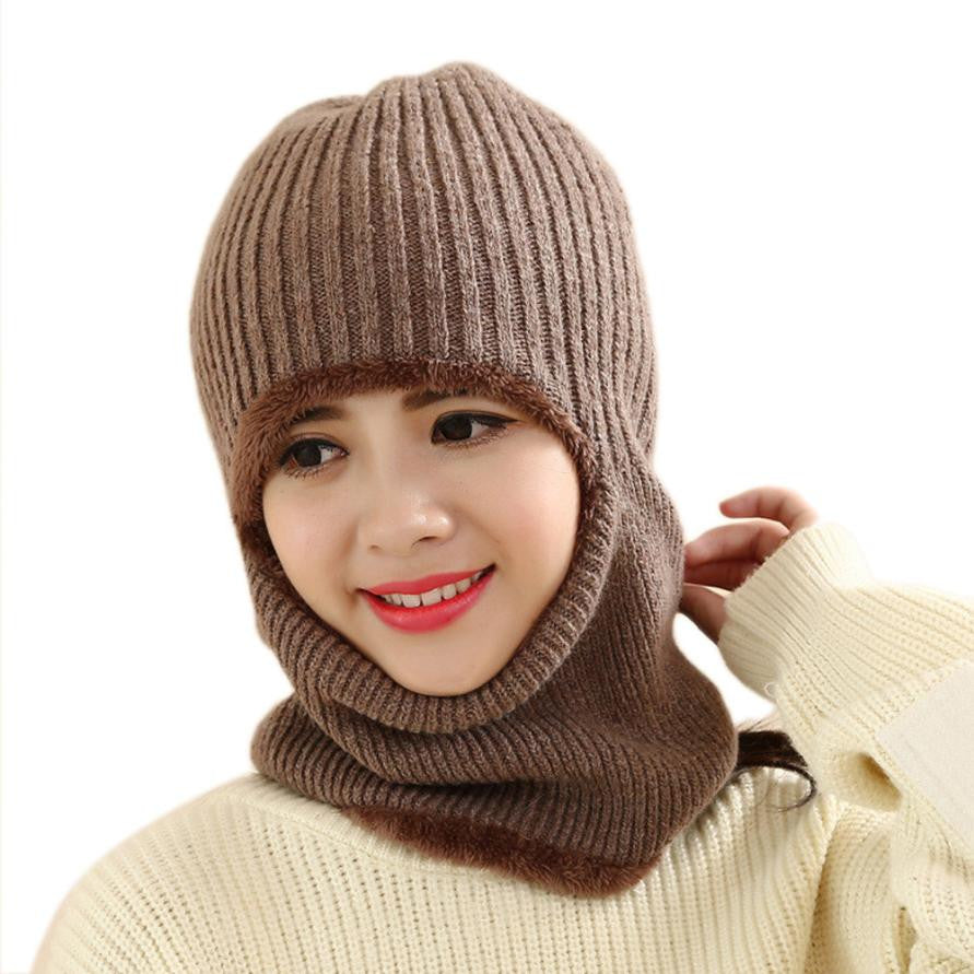 2016 Autumn Winter Warm Mask Hats For Women Knitted Wool Solid Braided Warm Windproof Unisex Hat Female Beanies Skullies