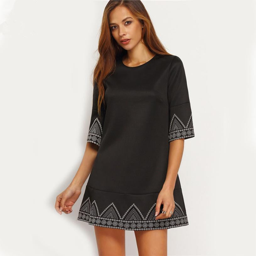 2016 Autumn Women Dress Elegant Bohomian Print Half Sleeved Evening Party Workwear Mini Dress Ladies Dresses Robe Femme
