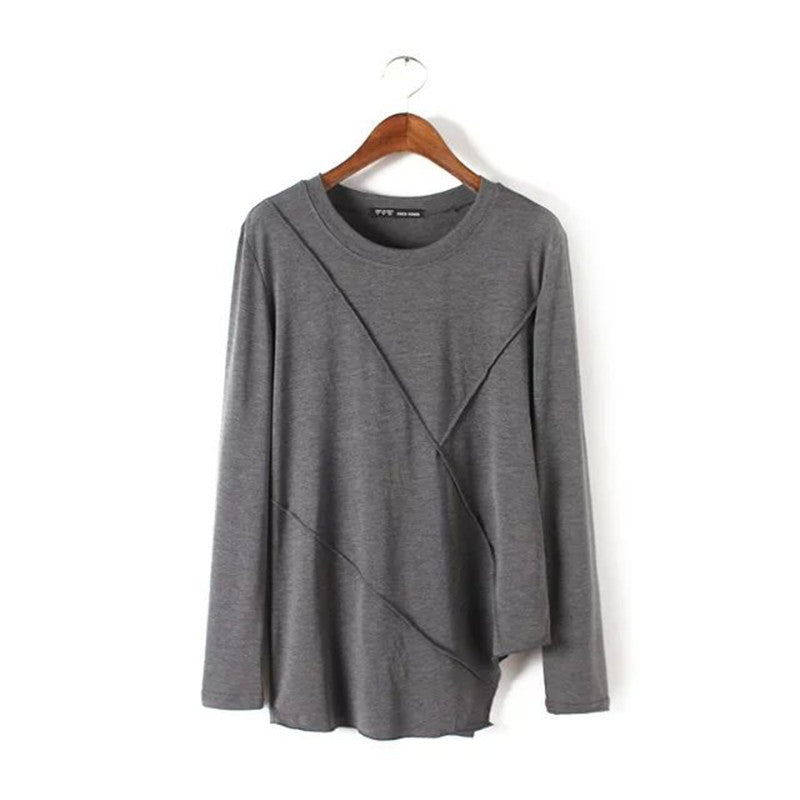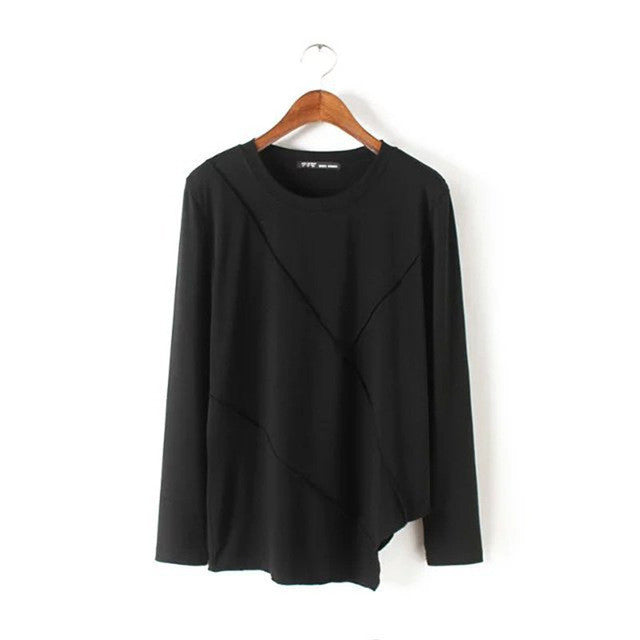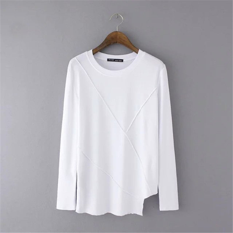 2016 Casual Women European Style T shirts O-neck Cotton Women Irregular Long Sleeve Female Solid Tops 70707