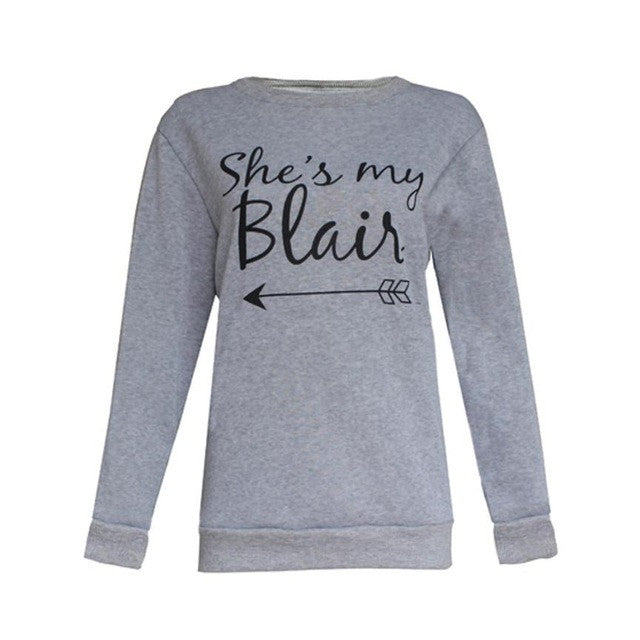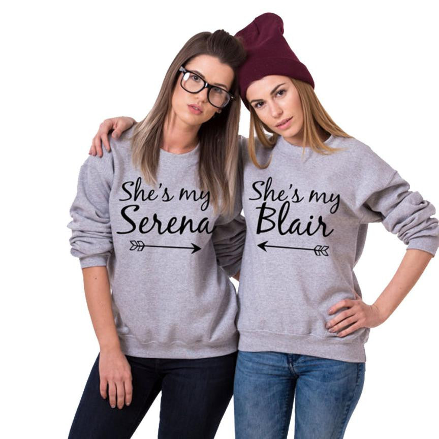 2016 Fashion Autumn Long Sleeve Best Friends T shirt Women Clothes"She's My Serena,She's My Blair" Print Tops For Girlfriends