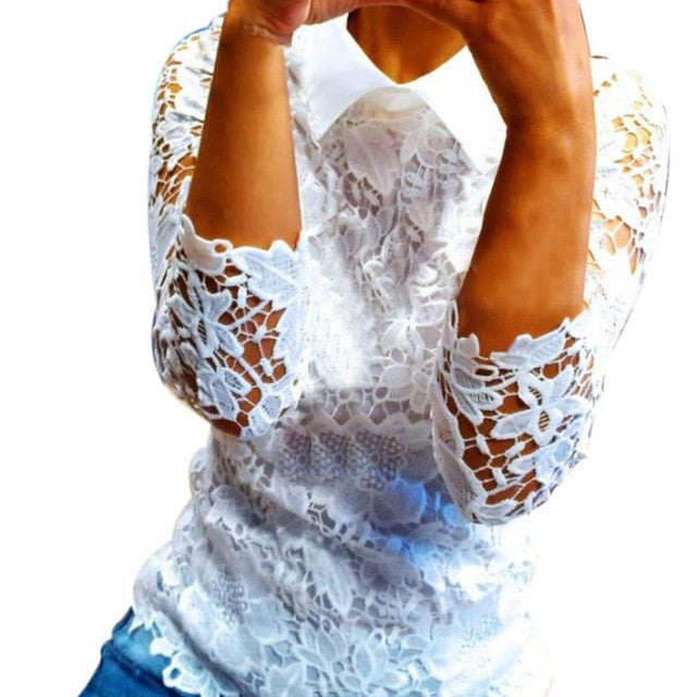 2016 Fashion Autumn Style Lace Ladies Blouses Loose Casual Long Sleeve Shirt Women Tops Blouse Ladies Tops Camisas Femenina