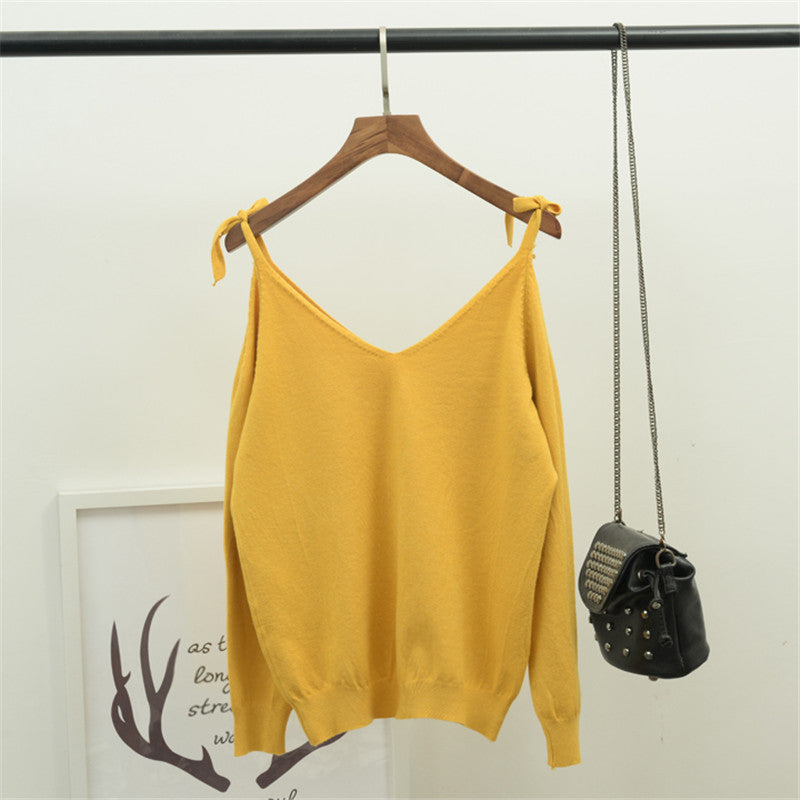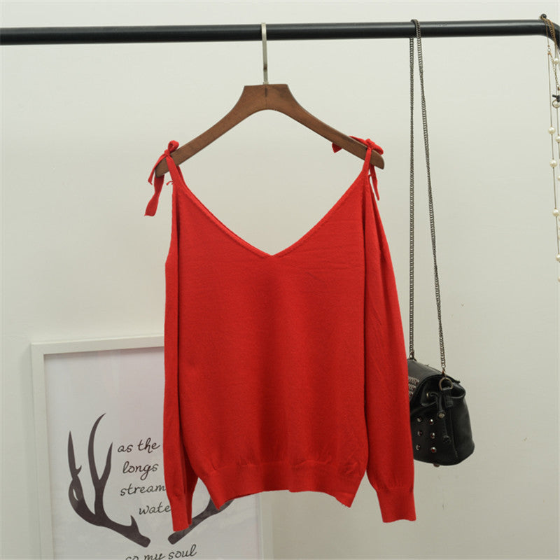 2016 Fashion Full Sleeve T-shirts Plus Size Female t shirts Kitting Off Shoulder Top V-neck Women t shirt 72144