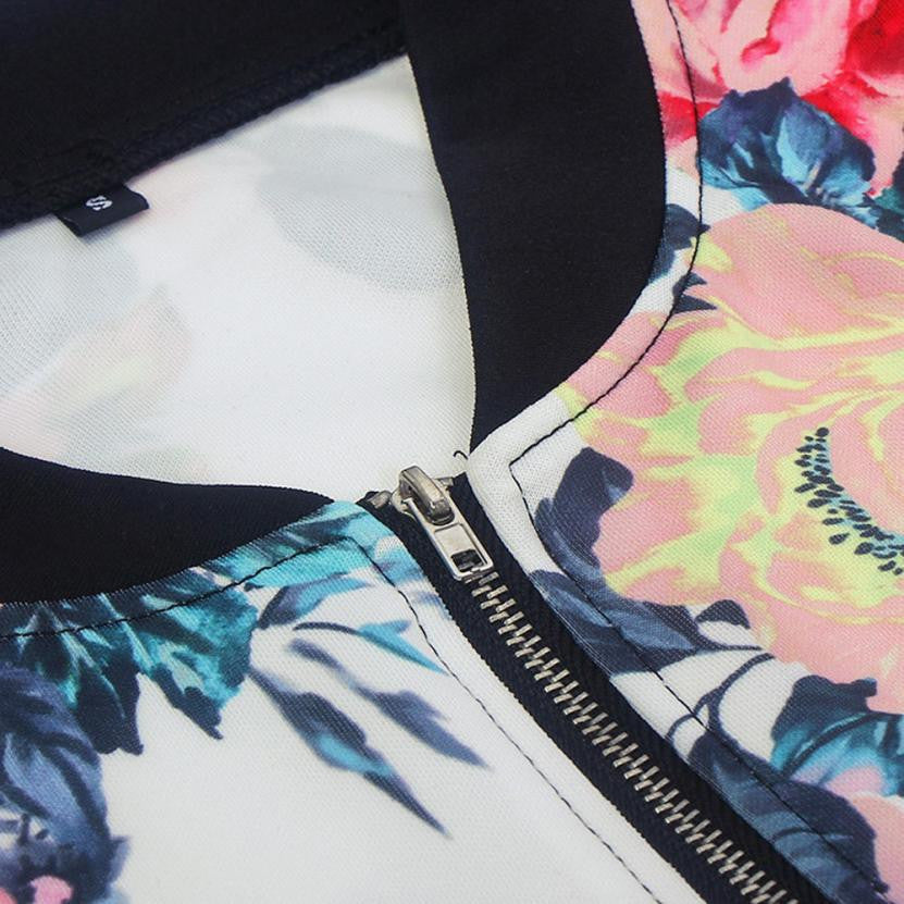 2016 Fashion Jackets Women Autumn Spring Short Coats Floral Print Punk Style Jackets Zipper Casual Female Coats For Ladies Girls