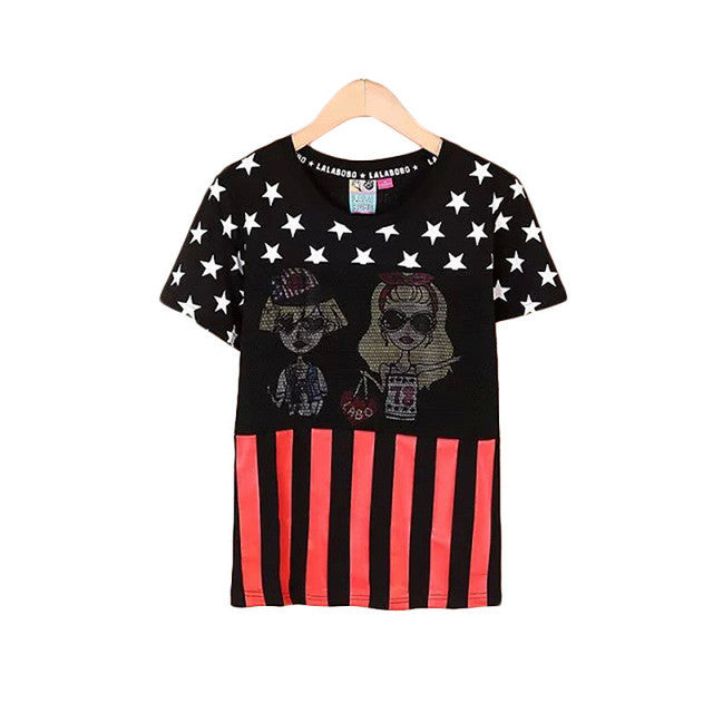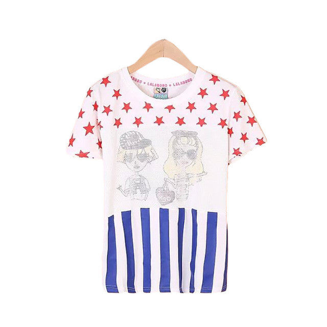 2016 Fashion Mesh Women clothing T shirts Letter Star Print t-shirt Women Lace Top Short Sleeve Female tops 71066