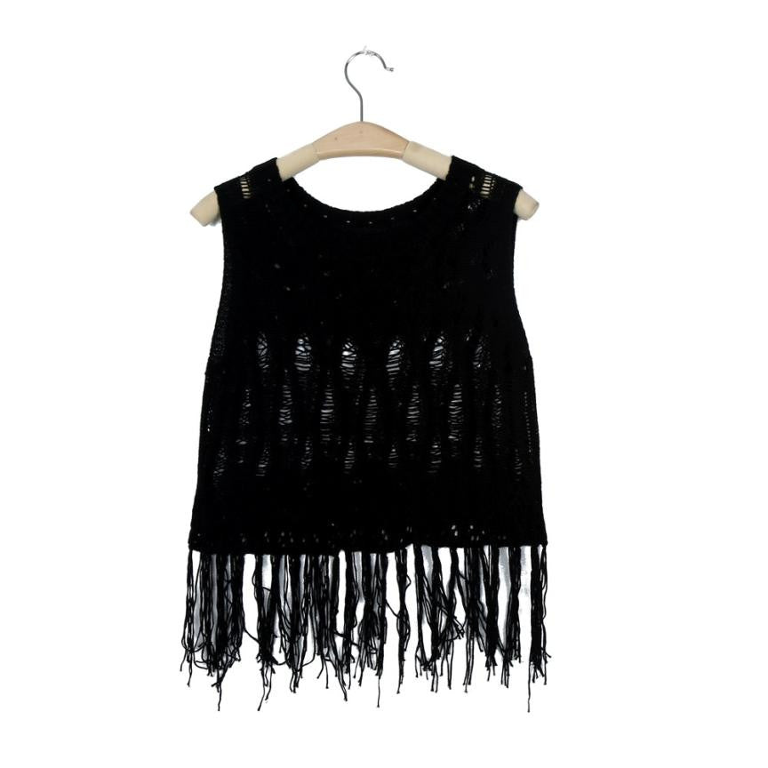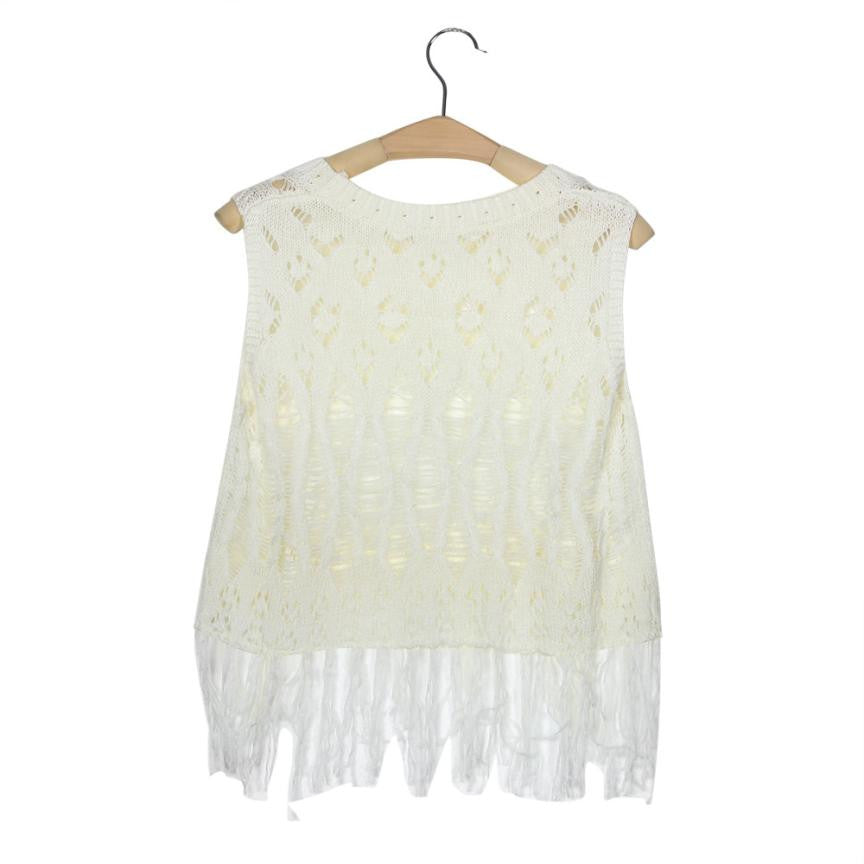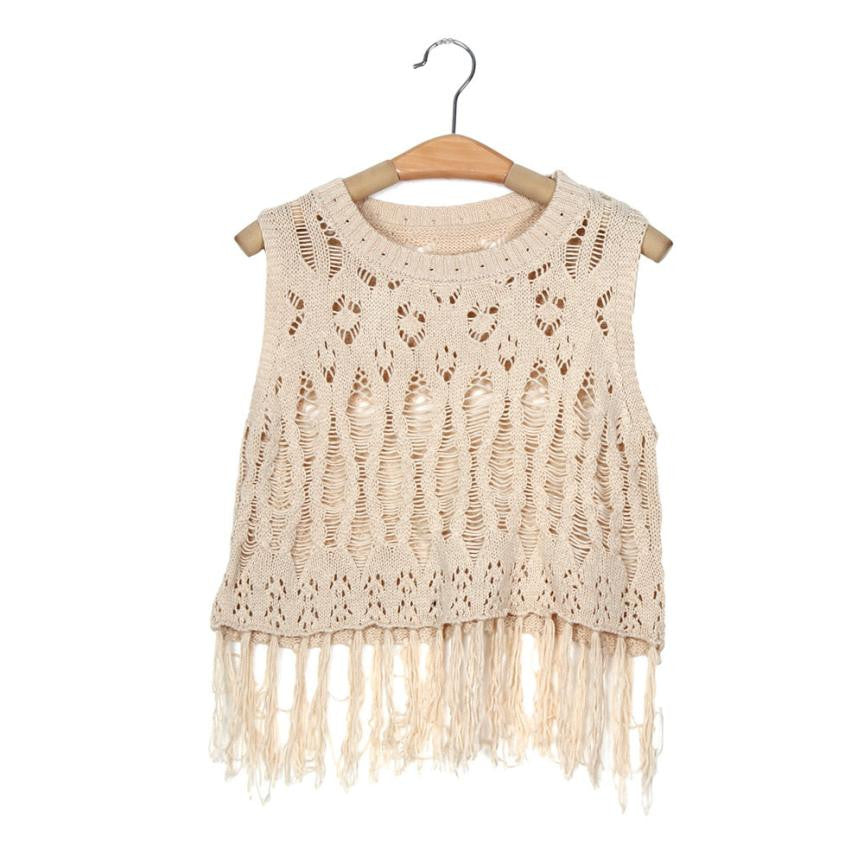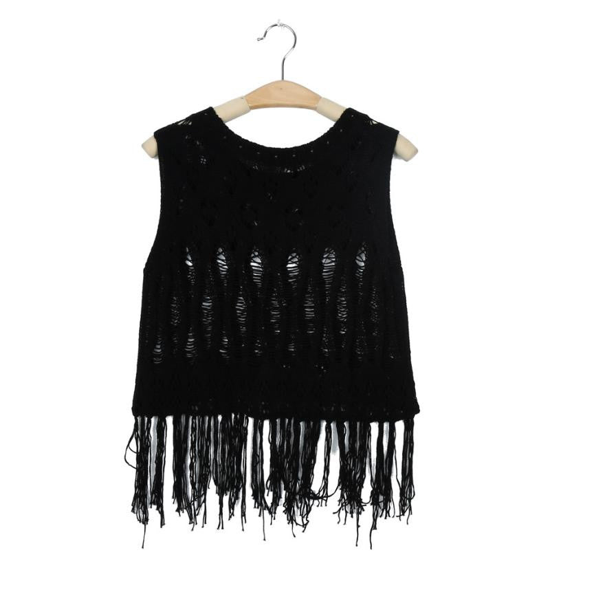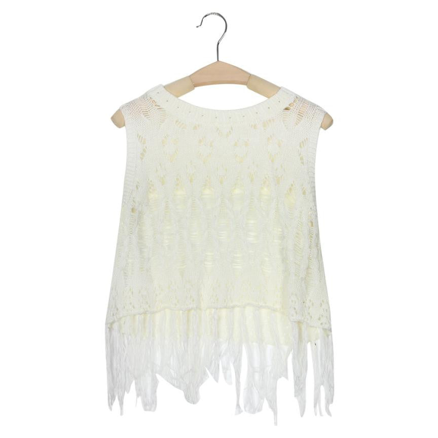 2016 Fashion Summer Crop Top Women Beach Loose Kinitted Hollow Out Tassel Shirts Women Sleeveless Women Tops Cropped Feminino