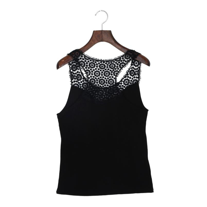 2016 Fashion T-shirt Women Sleeveless Lace Knitting T Shirt Women Tops Black White Shirts Camiseta Mujer