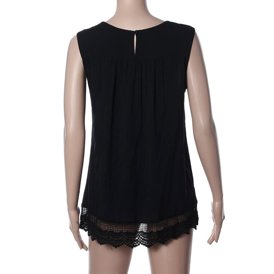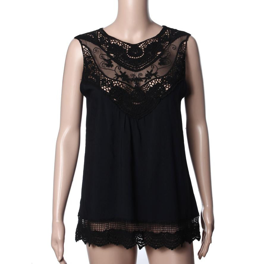 2016 Fashion Tshirt Woman Lace O Neck Womens Black Top Summer Tee Shirt Femme Sleeveless Casual Women Tshirt Camiseta Mujer