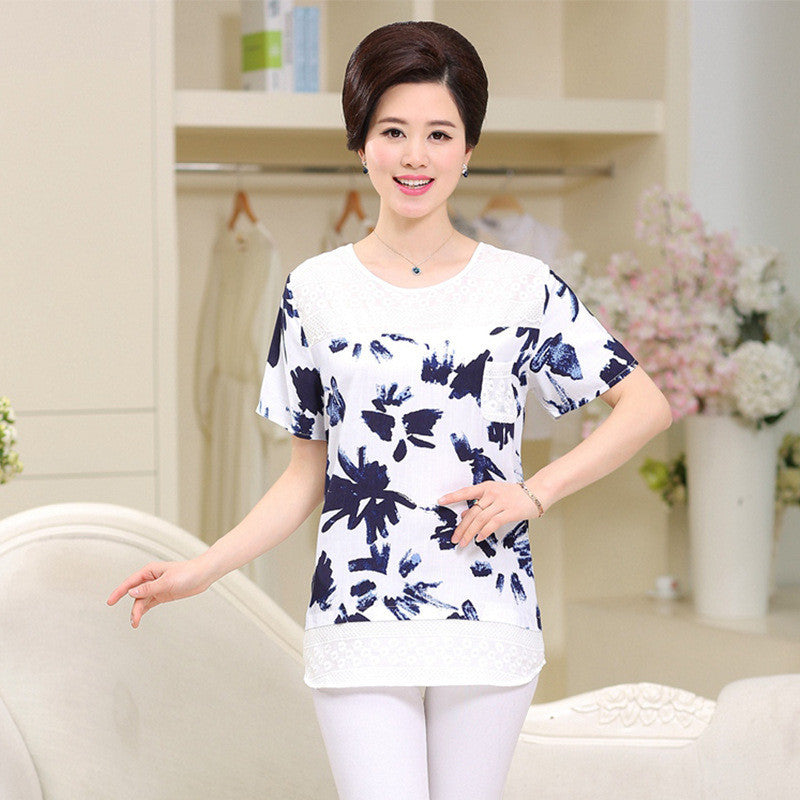 2016 Fashion Women T shirts Print T-shirt Women Lace Top Short Sleeve XL-4XL Female Plus Size tops 71013