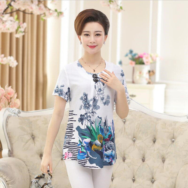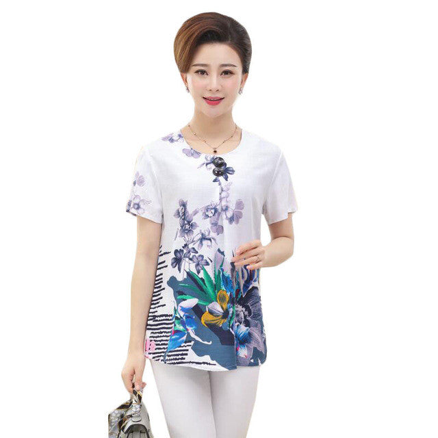 2016 Fashion Women T shirts Print T-shirt Women O-neck Button Top Short Sleeve XL-4XL Female Plus Size tops 71008