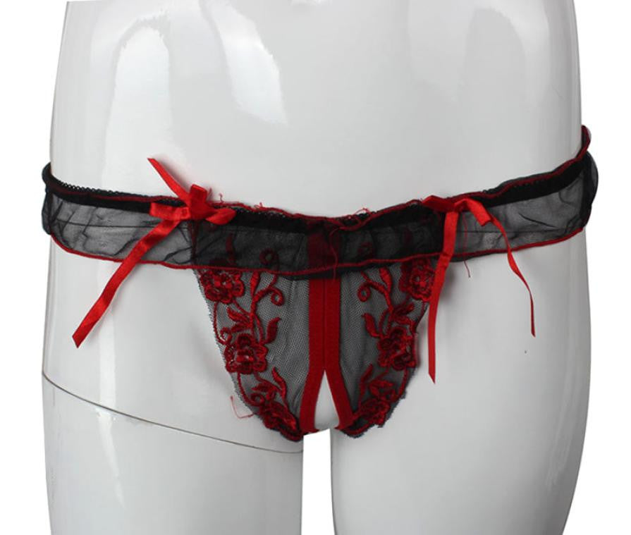 2016 Fashion Women's thong Lace Floral Womens Open Crotch Thongs G-string T-back Fitness Red Women Thongs and g strings