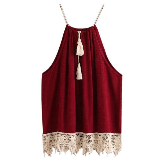 2016 Hot Sale Sexy Lace Women Tops Red Sleeveless Casual Style American Apparel T Shirt Women T-shirt Camisetas Mujer