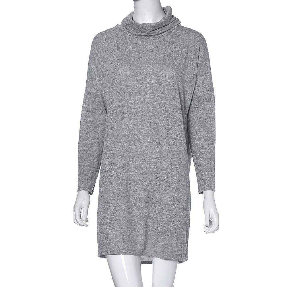 2016 Hot Sale Women Winter Dresses Long Sleeve Turnleneck Loose Solid Gray Women Casual Shirts Tops Autumn Sweater Casual Blouse