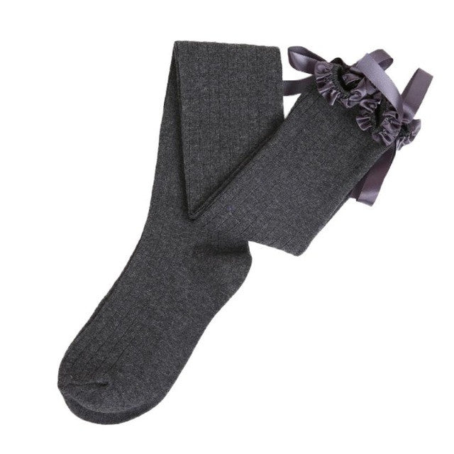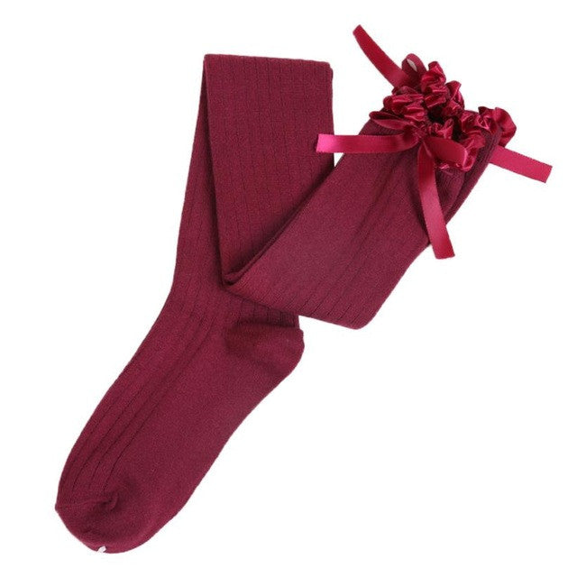 2016 Hot Sale Women's Cotton Elastic Leggings Winter Autumn Over Knee Bow Solid Fashion Thigh High Long Stockings 1128#