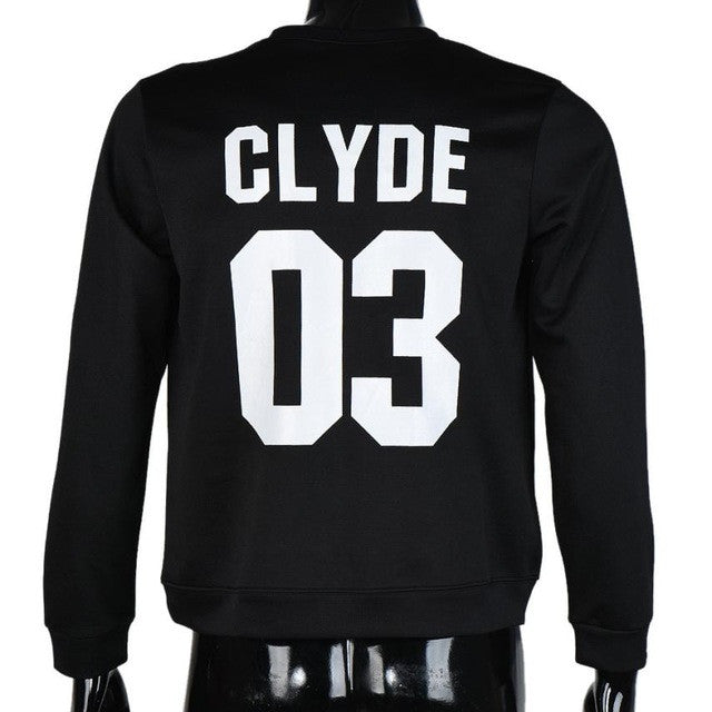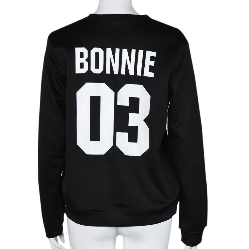 2016 New Arrival Autumn Long Sleeve Womens Tops "BONNIE 03,CLYDE 03" Letter Print Lovers T-Shirt Femme Plus Size Couple Clothes