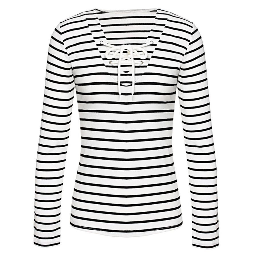 2016 New Arrival Autumn Striped Shirts Women Long Sleeve Bandage Casual Long Sleeve Spring Girls Ladies Tops T-Shirt Female
