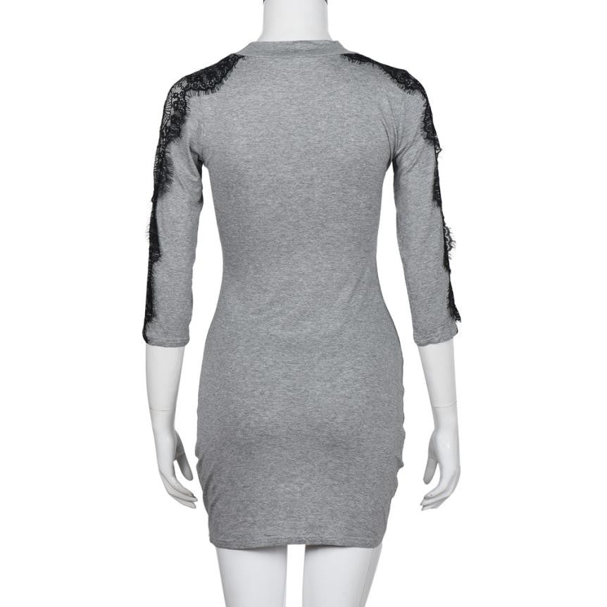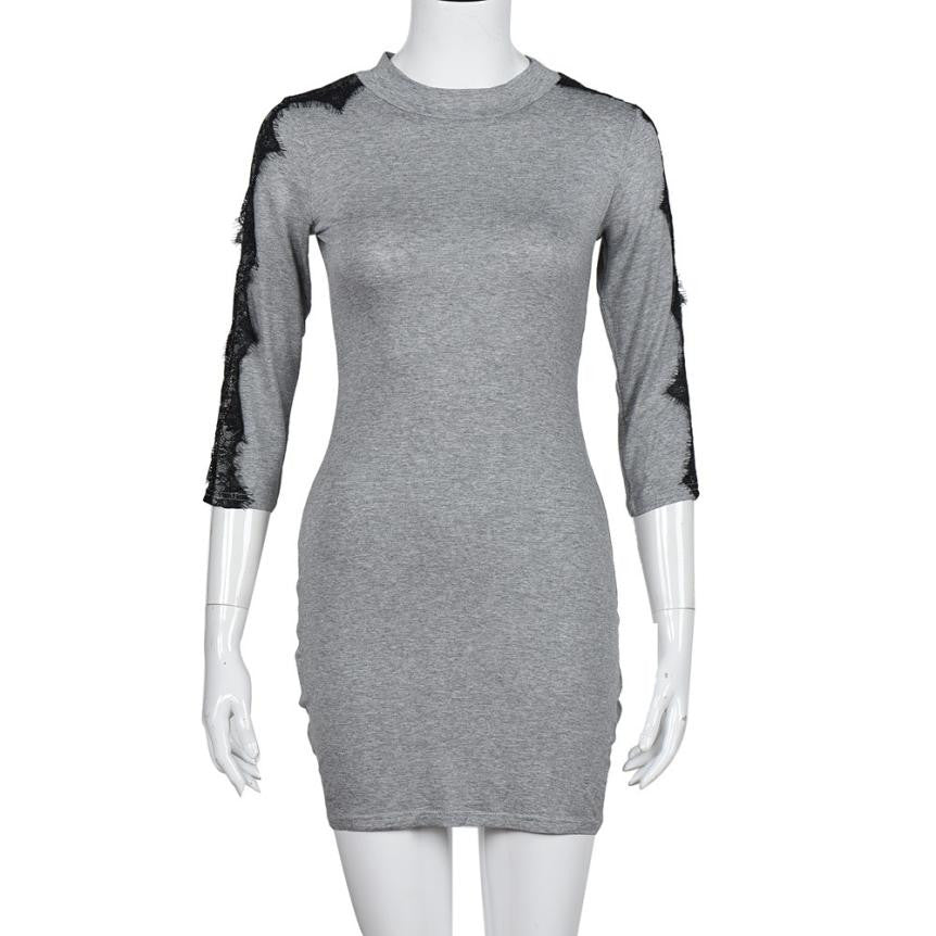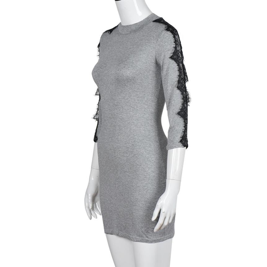 2016 New Arrival Autumn Womens Dress Three Quartz Lace Bodycon Elegant Women Casual Workwear Office Mini Dress Ropa De Mujer