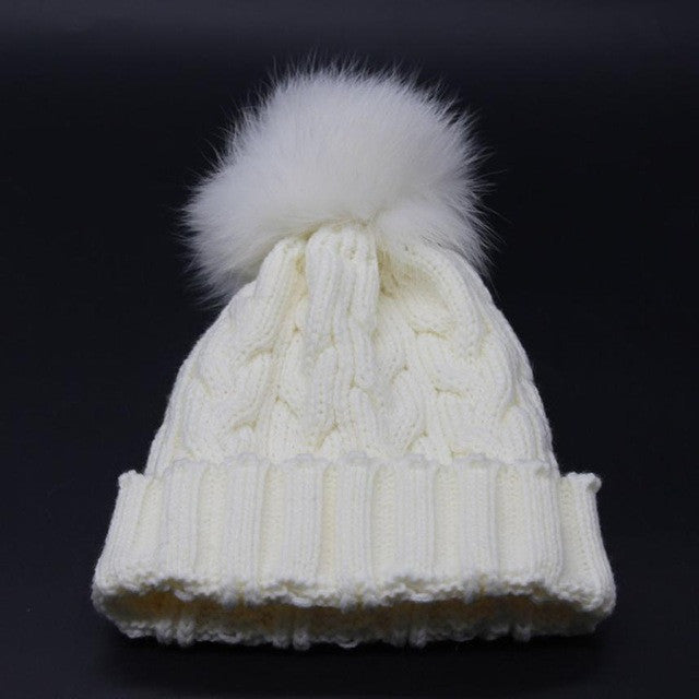 2016 New Arrival Baby Beanies Skullies Faux Fur Pompon Bal Knitting Wool Hats For Children Kids Crochet Hat Caps bonnet enfant
