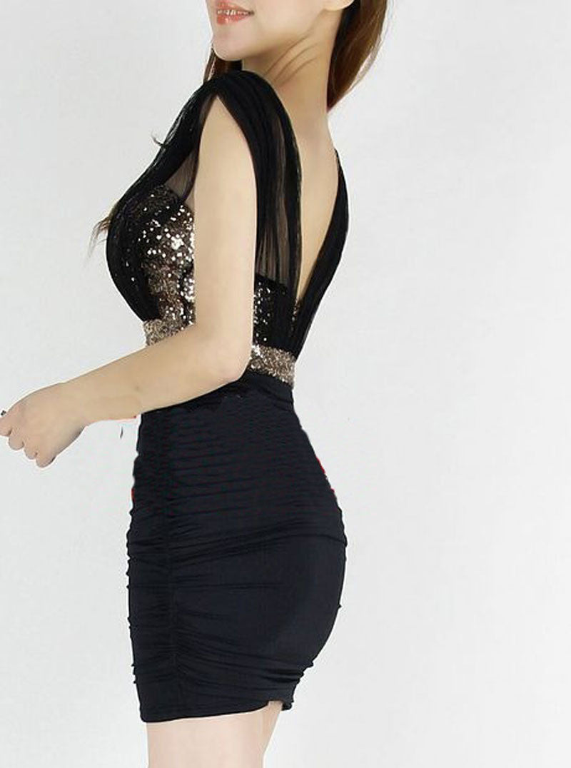 2016 New Arrival Sexy Women Backless Slim Dress Summer Deep V-Neck Mesh Sequin Dress Package Hip Casual Business Party Dresses