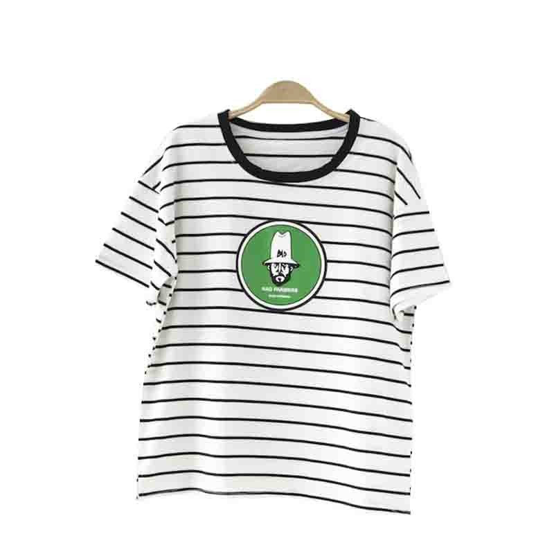 2016 New Arrival Short Sleeve Stripped T-shirts Large Size Female Character T shirts Cartoon Print Top Women t shirt 71112