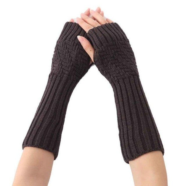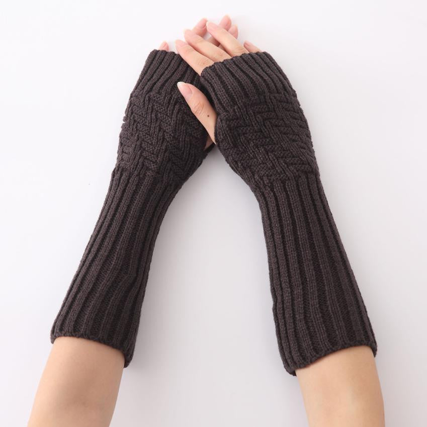 2016 New Arrival Women Fashion Knitted Gloves Elbow Length Fingerless Mittens Spring Winter Soft Warm Gloves Female Girls Gants