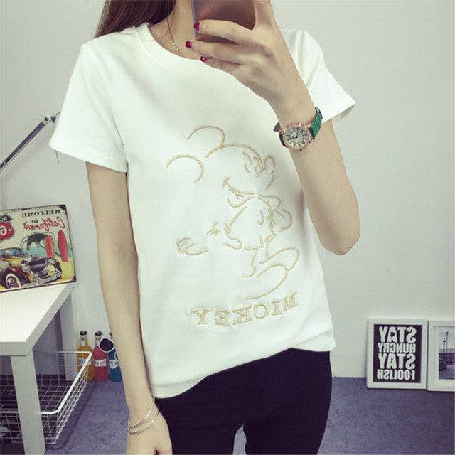 2016 New Casual Women Animal Carton Print O-neck T shirts Female Short Sleeve Tshirt Plus Size Top 71276