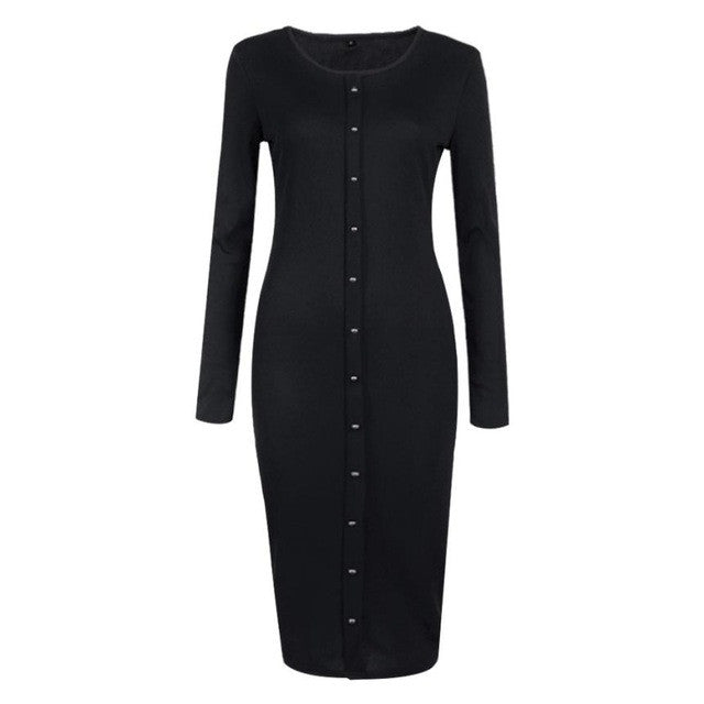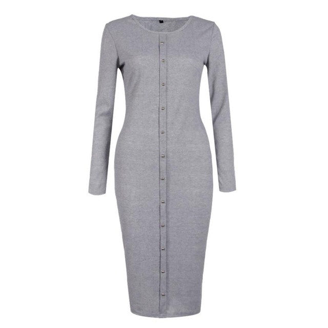2016 New Fashion Autumn Women Long Sleeve Round Neck Knitted Button Bodycon Dress Women Clothing Vestidos
