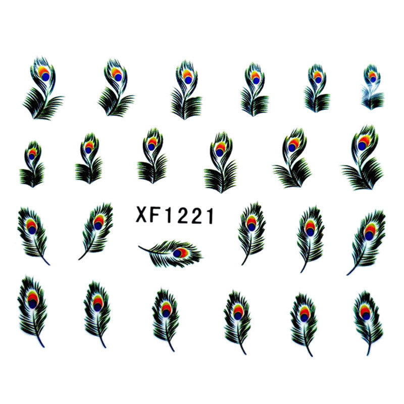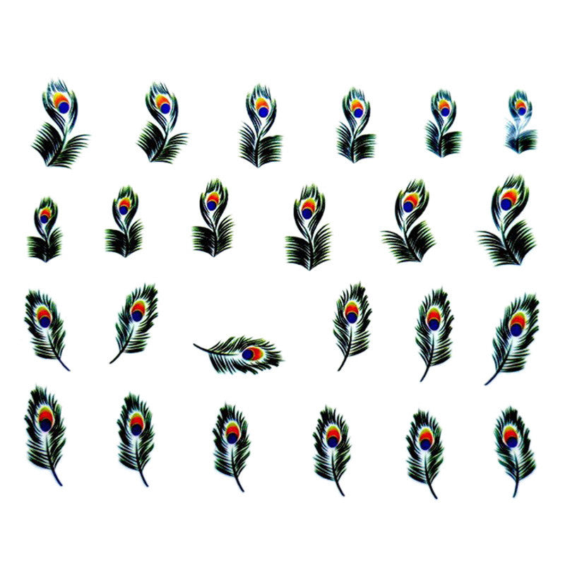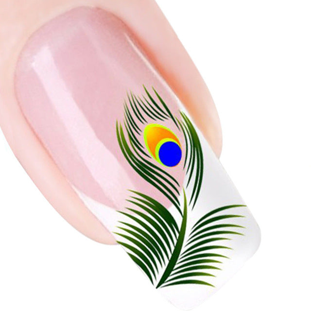 2016 new fashion Stickers & Decals 5pcs Peacock Feather Design Nail Tip Art Water Transfers Decal Sticker