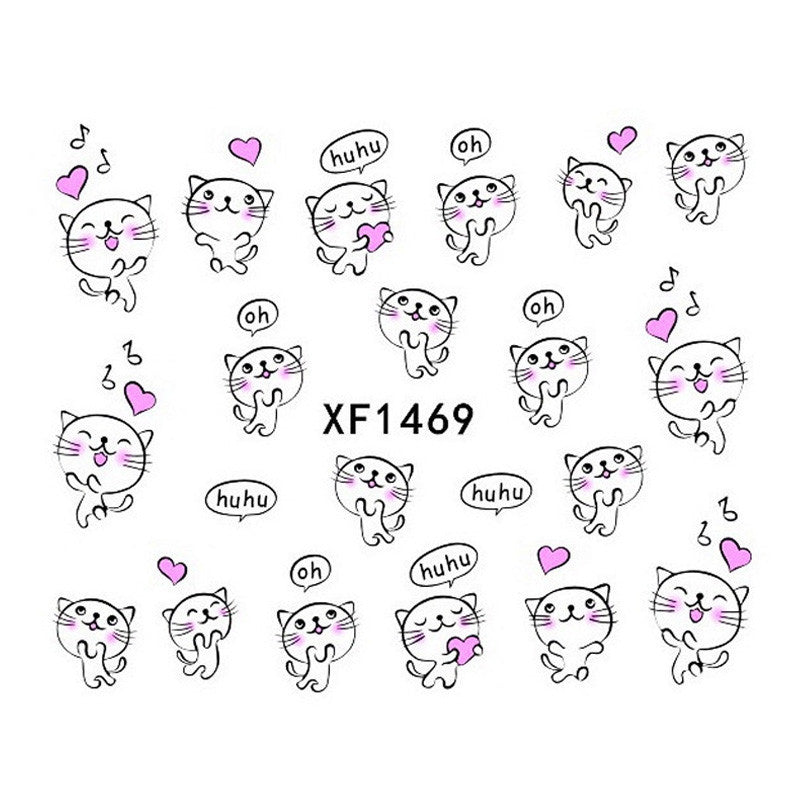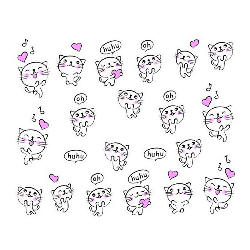 2016 new fashion Stickers & Decals 5pcs Smile Cat Nail Tip Art Water Transfers Decal Sticker