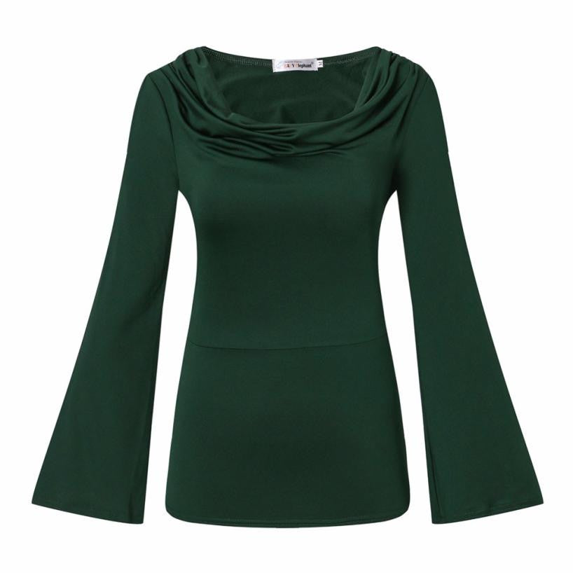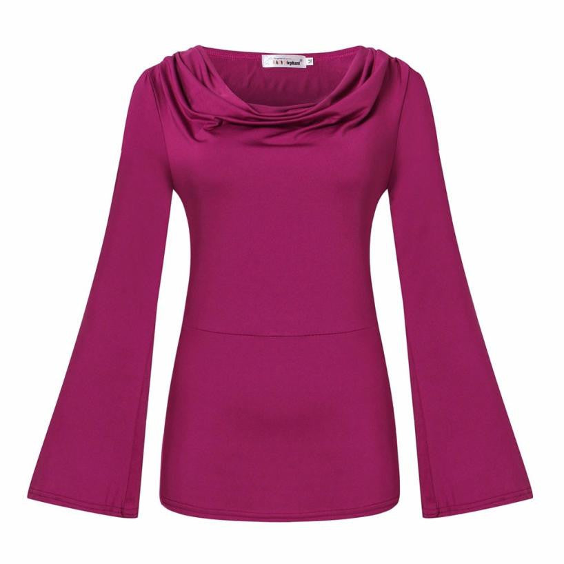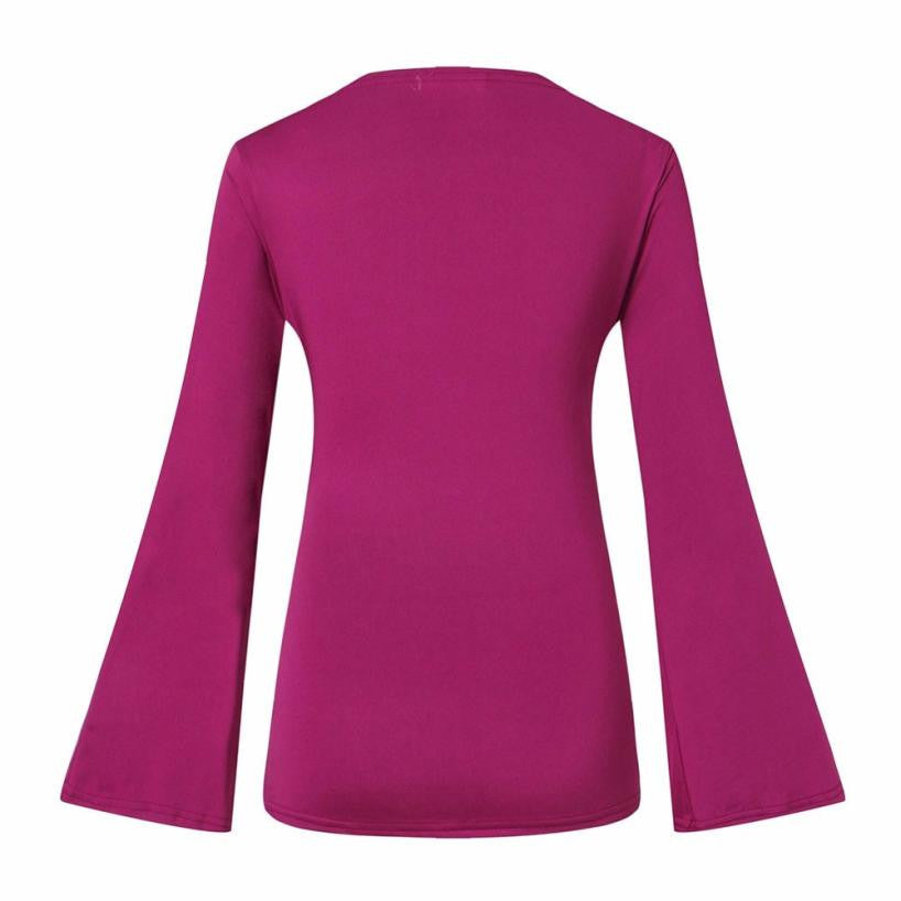 2016 New Fashion T Shirt Women Solid Autumn Flare Long Sleeve Open Shoulder T-Shirt Woman Clothes Camiseta Feminina