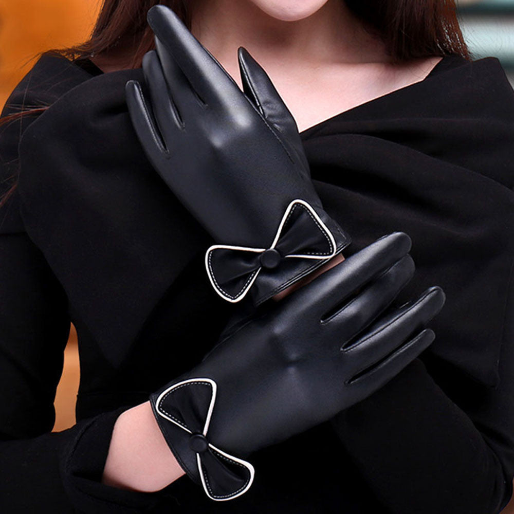 2016 New Fashion Winter Gloves For Womens Thermal Warm Artificial leather Bow Motorcycle Snow Snowboard Gloves Female