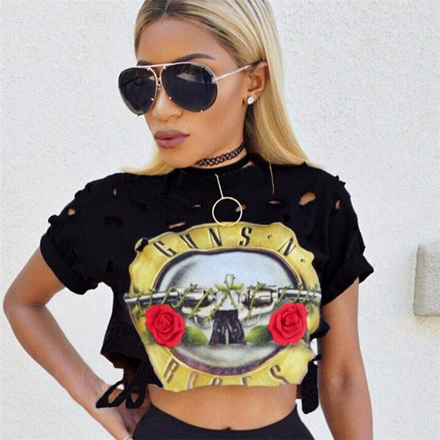 2016 New Fashion Women clothing T shirts Hollow Out Letter Print t-shirt Women Top Short Sleeve Female Crop tops 71623