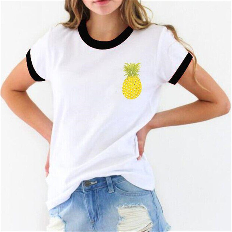 2016 New Fashion Women clothing T shirts Pineapple Print t-shirt Women Top Short Sleeve Female Fruit tops 71621