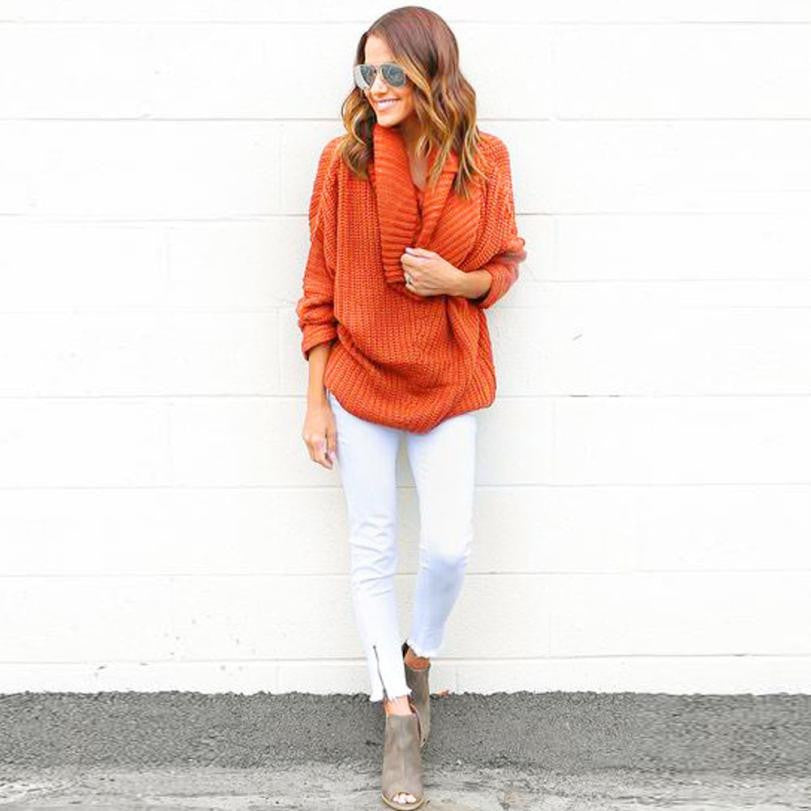 2016 New Fashion Women Sweater Full Sleeve Casual Loose Off Shoulder Oversize Sweaters And Pollovers Women Pullover Bow Collar