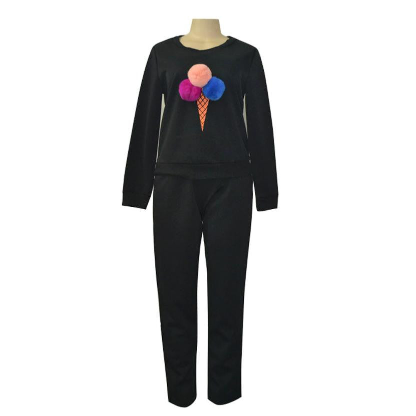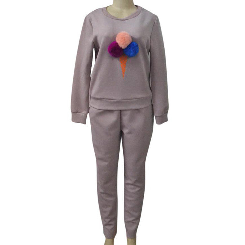 2016 New Fashion Women Sweatshirt Plush Ball Spring Autumn Long Sleeve Women Two Piece Set Long Pants + 1 PCS Tops Outfit Women