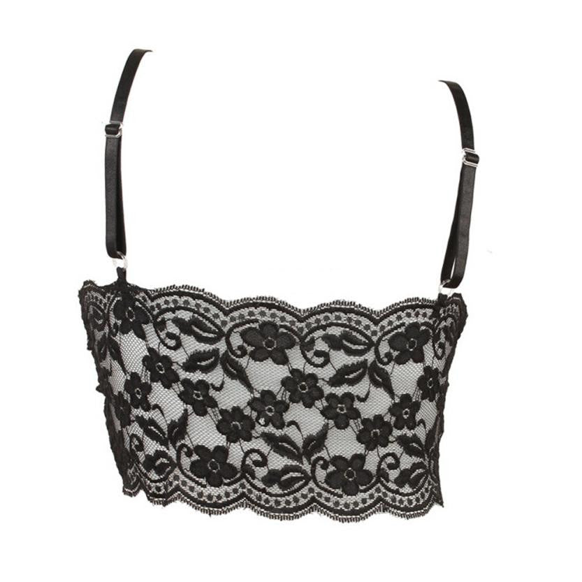 2016 New Fashion Women Translucent Sheer Lace Crop Top Condole belt Strap Lingerie Bustier Bra Tops For Women Girls