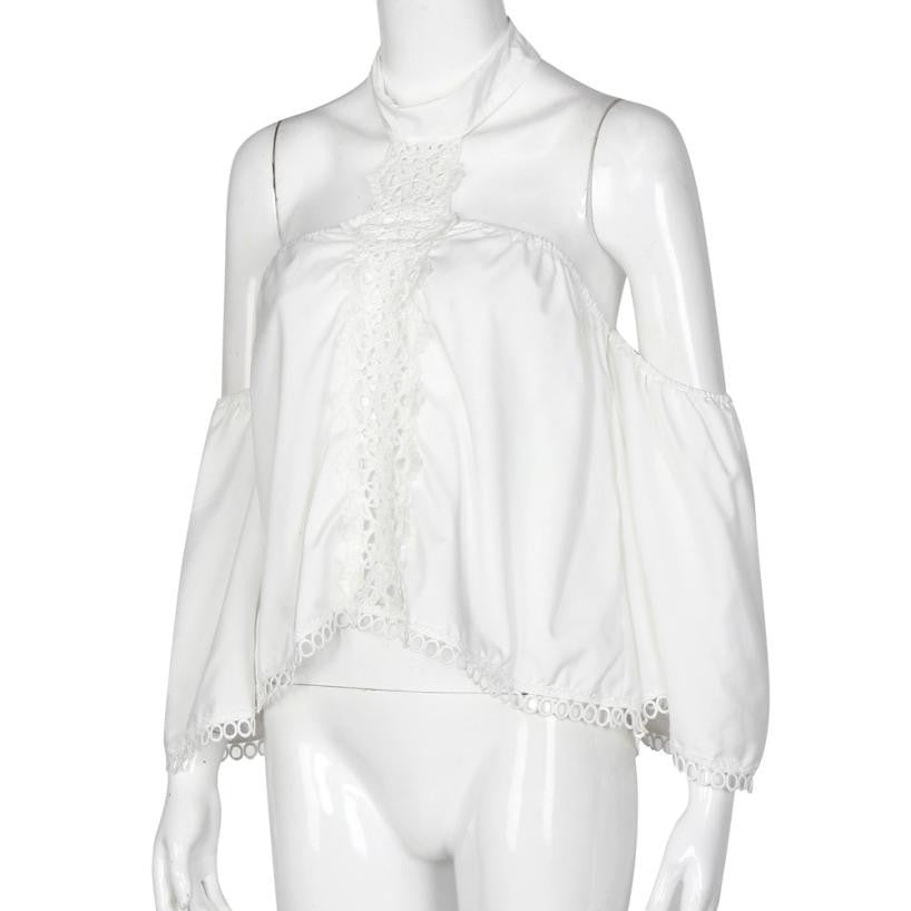 2016 New Hot Off Shoulder Chiffon Shirt Women Sexy Lace Backless Long Sleeve Autumn Casual Loose Tops Ladies Blouse Blousa