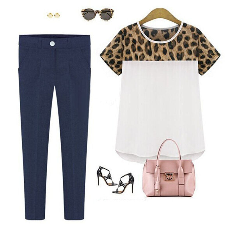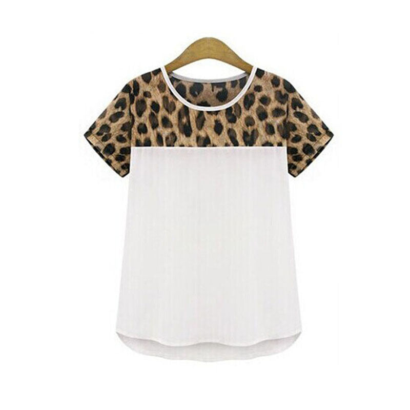 2016 New Regular Fashion Sexy Hot Selling Women Leopard Printing Chiffon Tops Cropped T-shirt