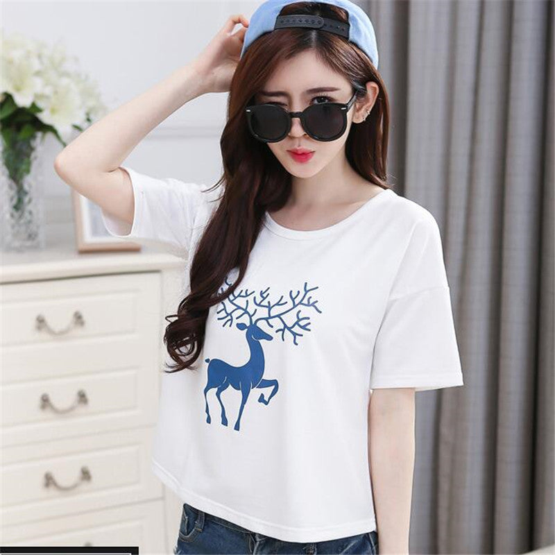 2016 New Summer T Shirt Women Short Sleeve Casual O-Neck Tee Tops Female Print Korean Style T-shirt Plus Size 70643