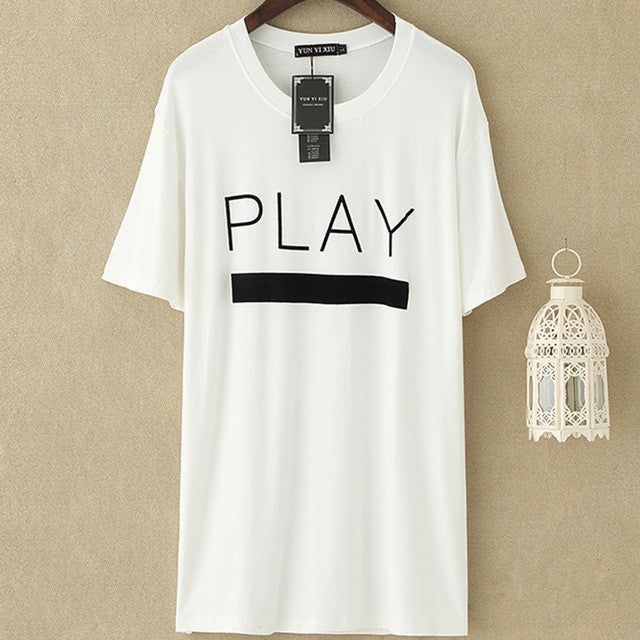 2016 New Sweet Women T Shirt Letter Print Short Sleeve O-neck Long T-shirt Hit Color Casual Summer Women Tops 71212