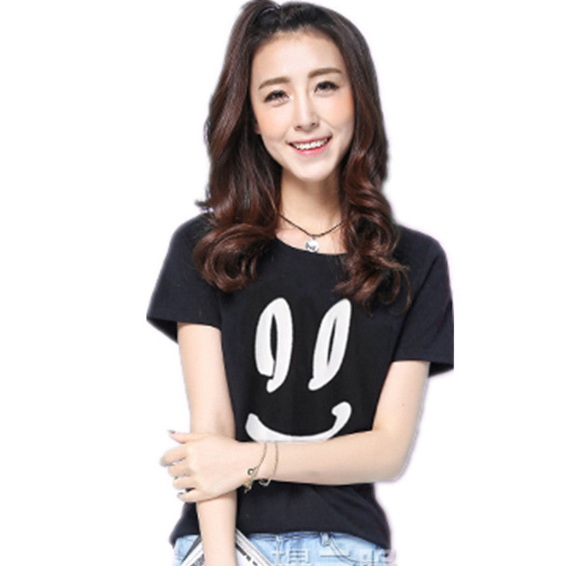 2016 New T Shirt Women Short Sleeve Casual O-Neck Tee Tops Female Smile Print T-shirt Plus Size 70645